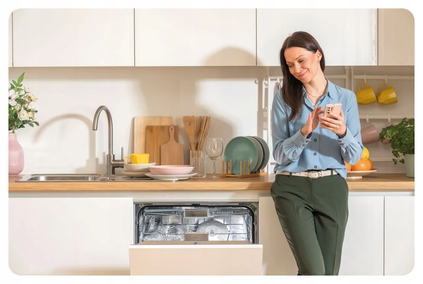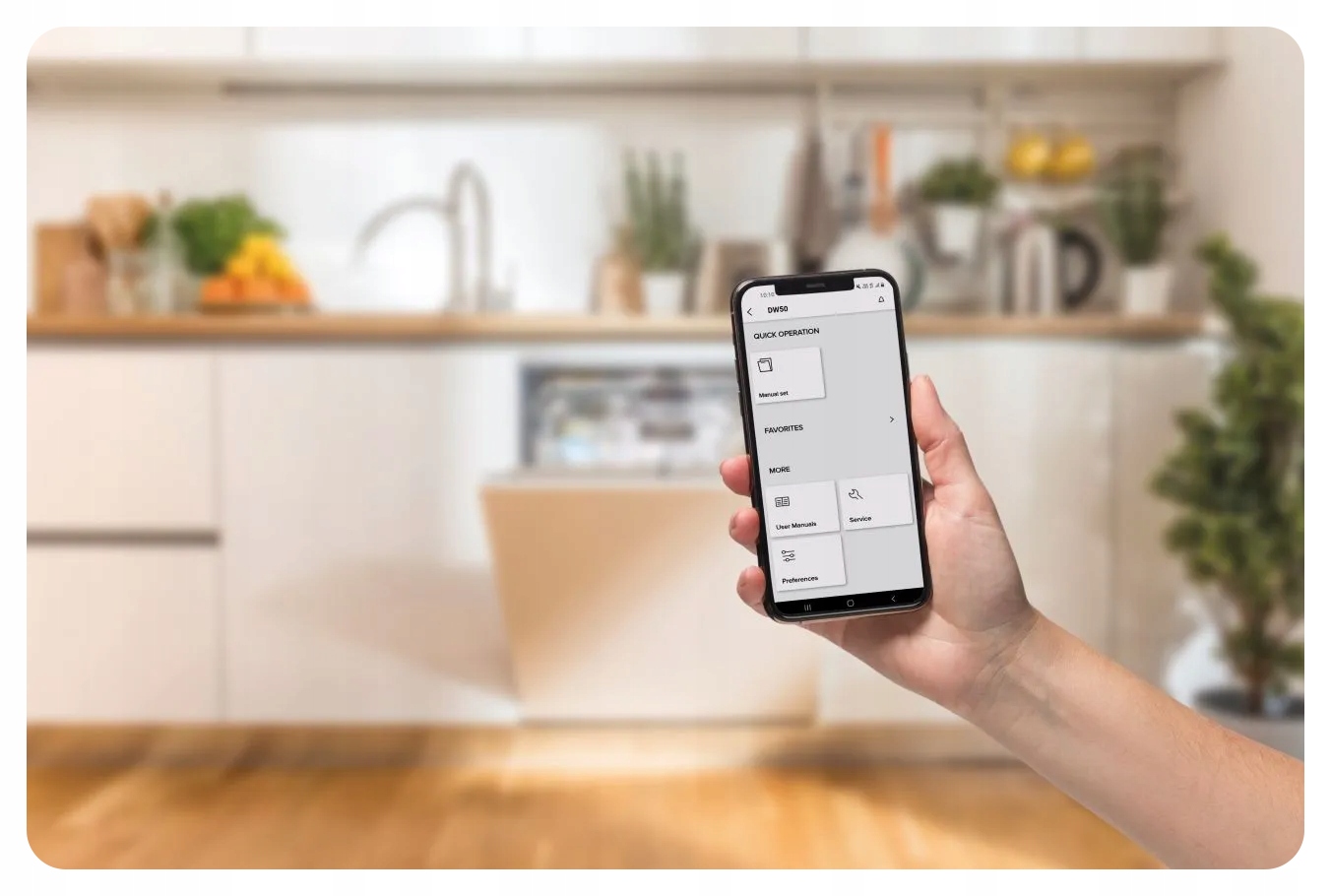 "Wszystko o Twojej zmywarce" na wyciągnięcie ręki Uprość swoje życie i miej wszystkie możliwości sterowania i sprawdzania swojej zmywarki za pomocą aplikacji na urządzeniu mobilnym. Zdalne sterowanie, powiadomienia mobilne i ticketing to funkcjonalności, które pomogą Ci zarządzać wszystkimi czynnościami związanymi ze zmywaniem płynniej i szybciej z dowolnego miejsca, w którym się znajdujesz.